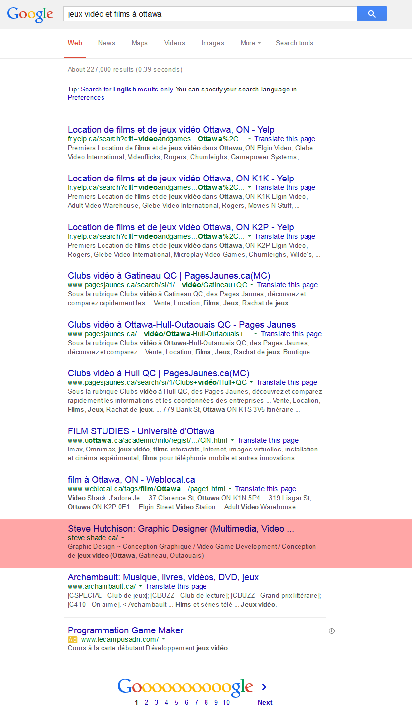 Laissez Google améliorer vos JeuxVidéo et Films, Ottawa